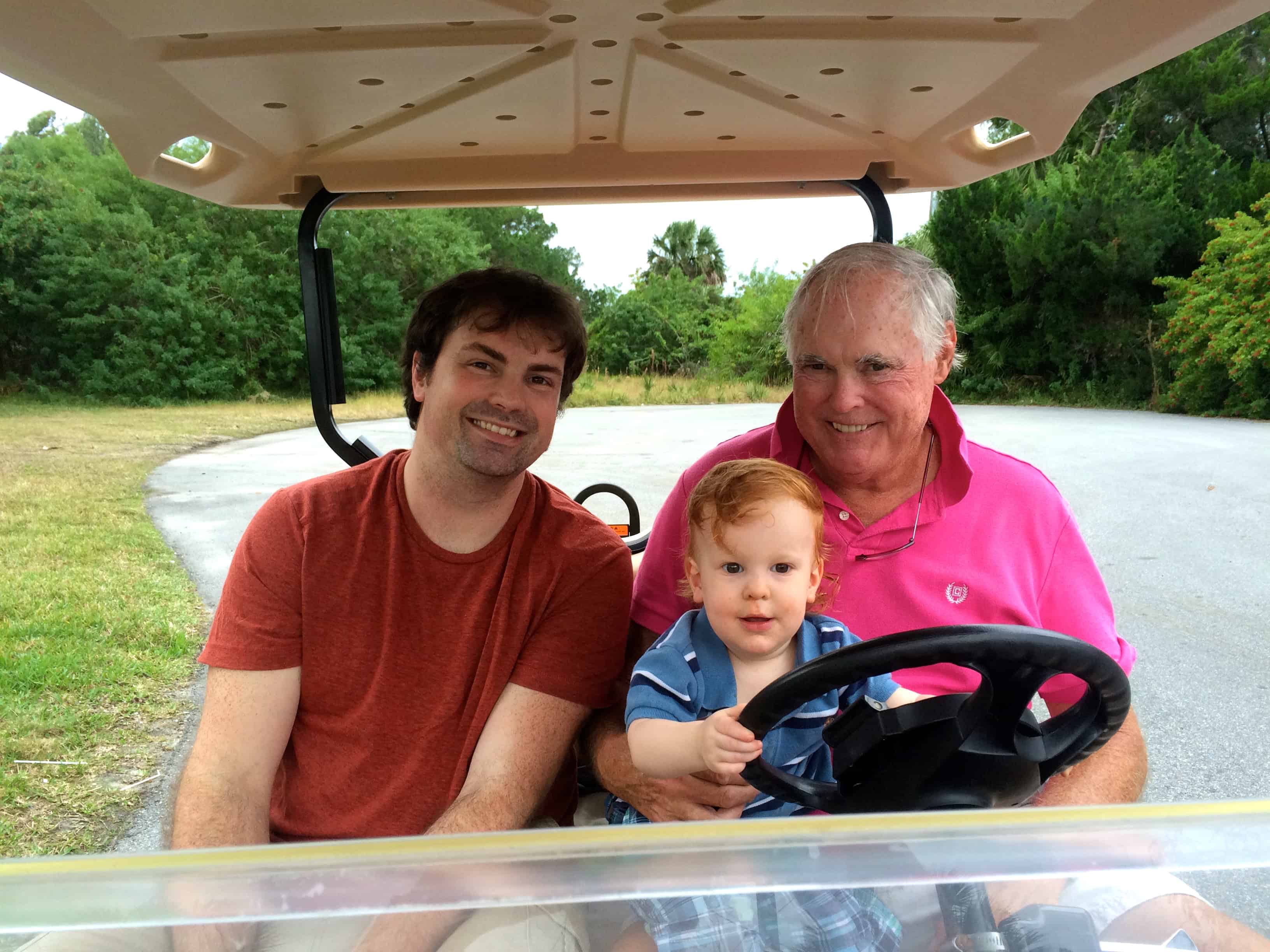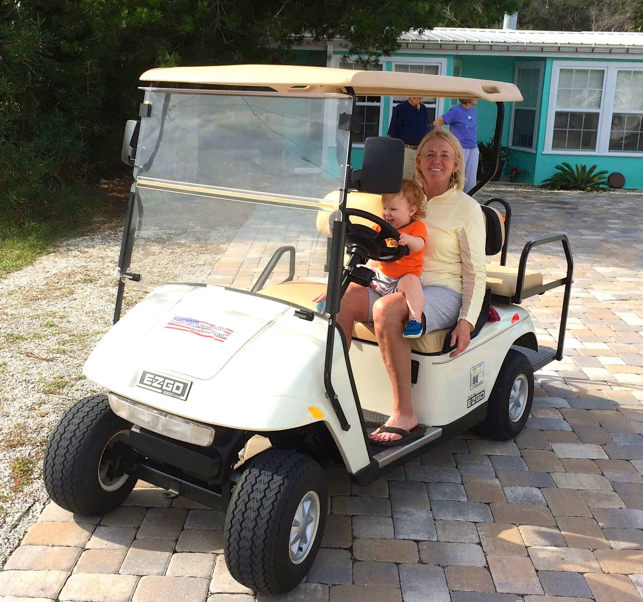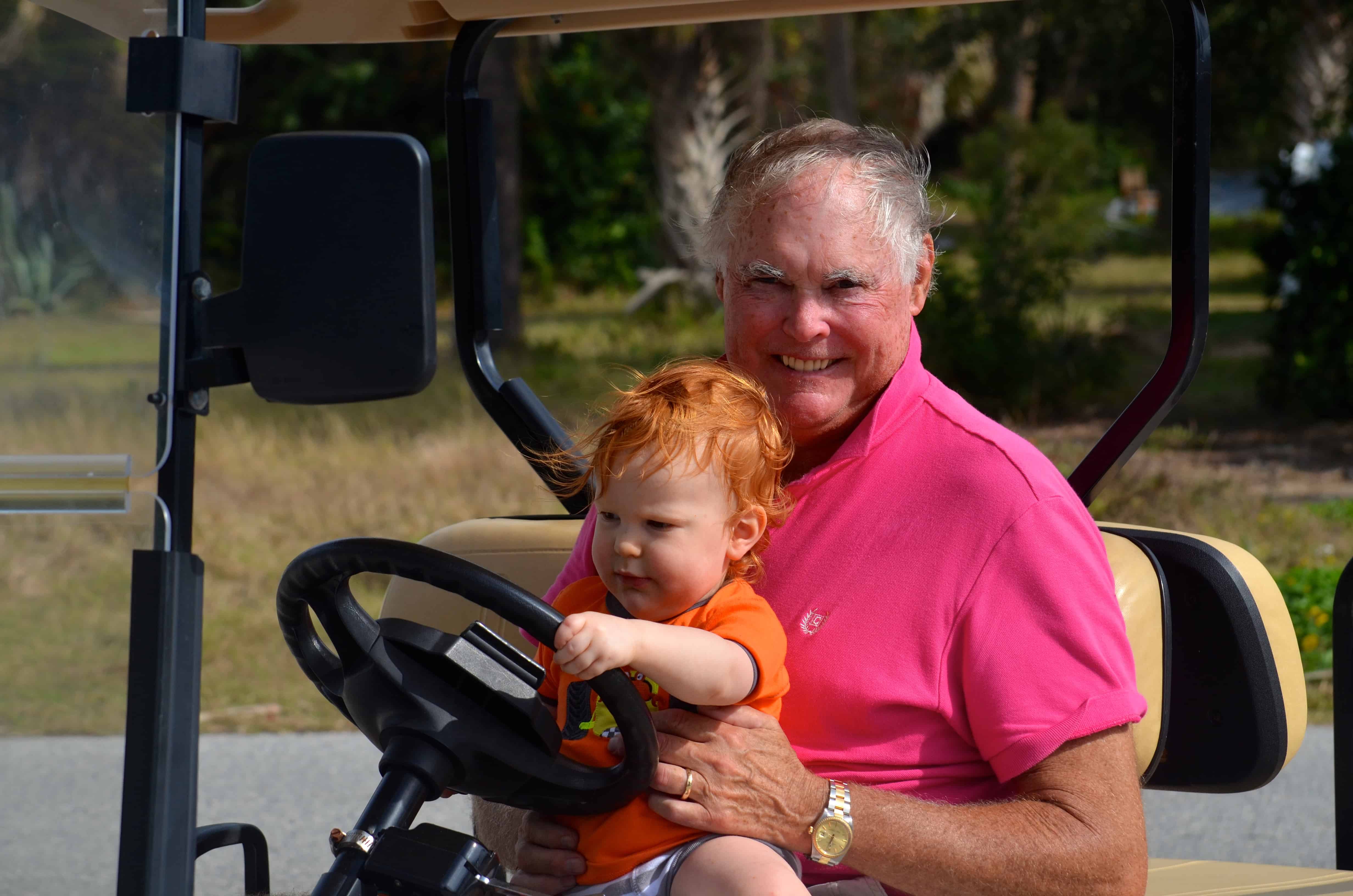 On Wednesday Carol, Roland and Betty Lou arrived with their golf cart.  Collin was in heaven having everyone drive with him steering the cart.  Does it get any better?