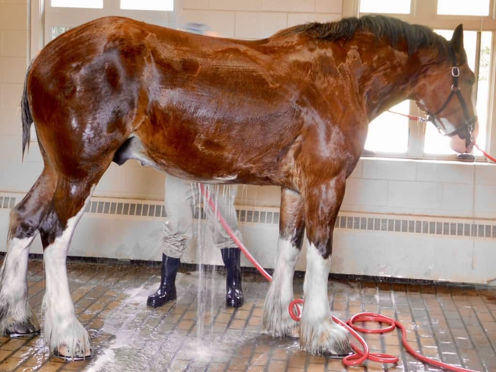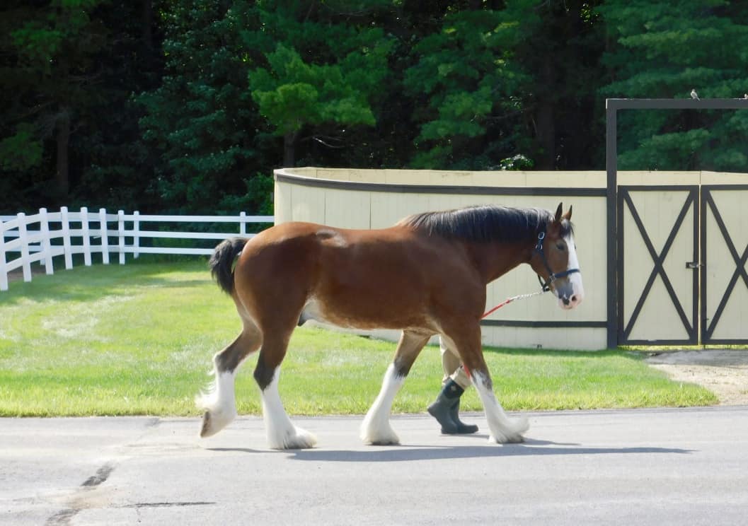Later the barns opened and we were able to go in and see the Clydesdale horse. This is a training facility for Budweiser for their horses and where the east coast group is housed. We saw one being cleaned and a number walking in the fields, they are magnificent.