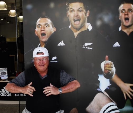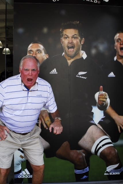 We walked down to the town to do a little shopping . Pete and John had fallen in love with the “All Black”, that is the New Zealand Rugby team that is loved in the country. One of the things they do is a short tribal HAKA before the games so Pete and John had to try and be one of them in front of an All Black poster.