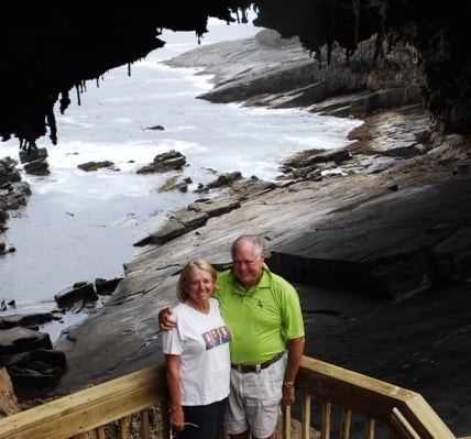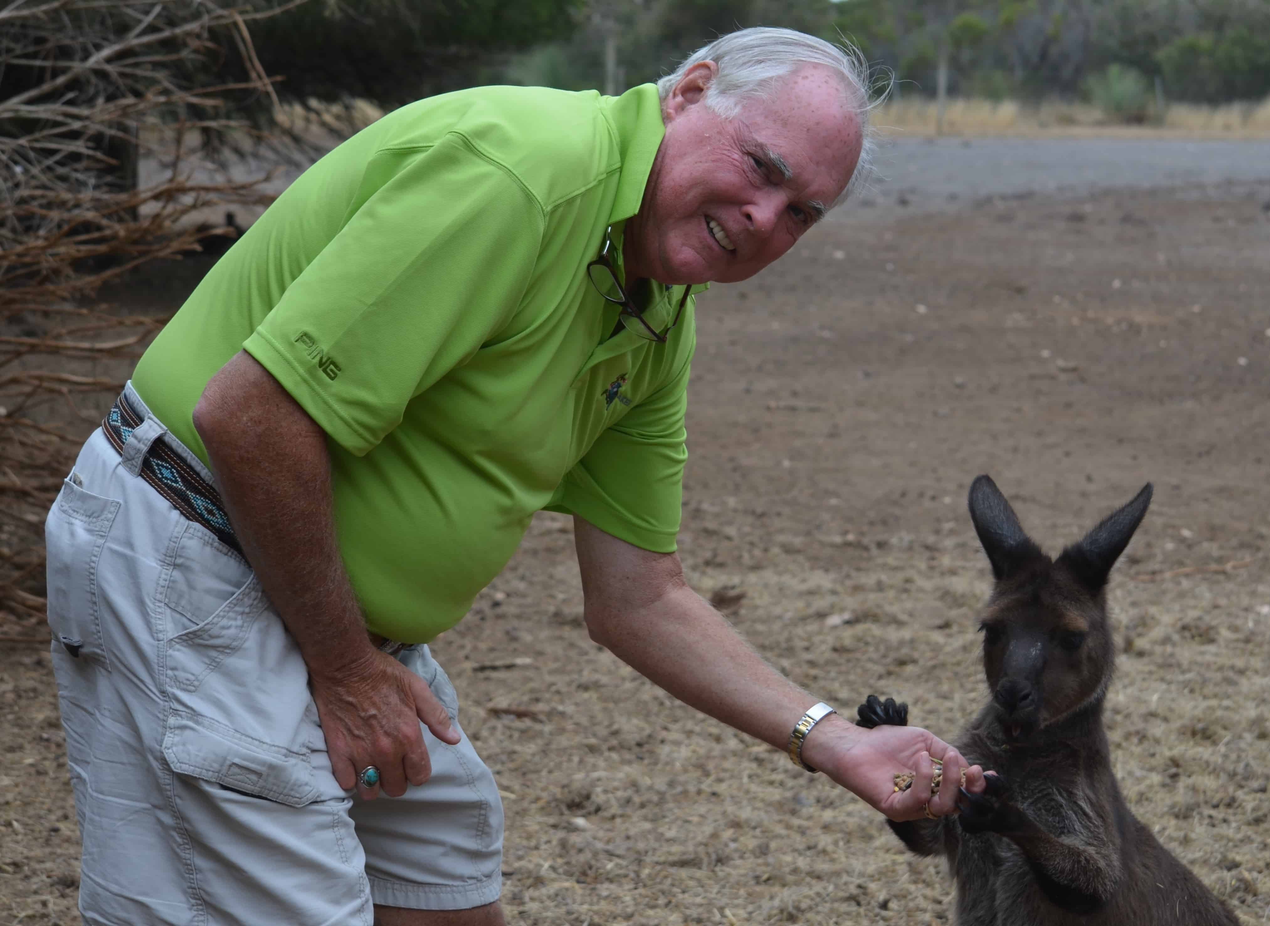 Dana also told us about Kangaroo families. A family is called a MOB. Each mob has a single breeding male, a number of females and the joey’s. Another male may be allowed in the mob as long as he does not try to breed with the females. After feeding some of the kangaroos we departed from the center on to our next stop Admirals Arch, Weirs Cove and the Remarkable Rocks.