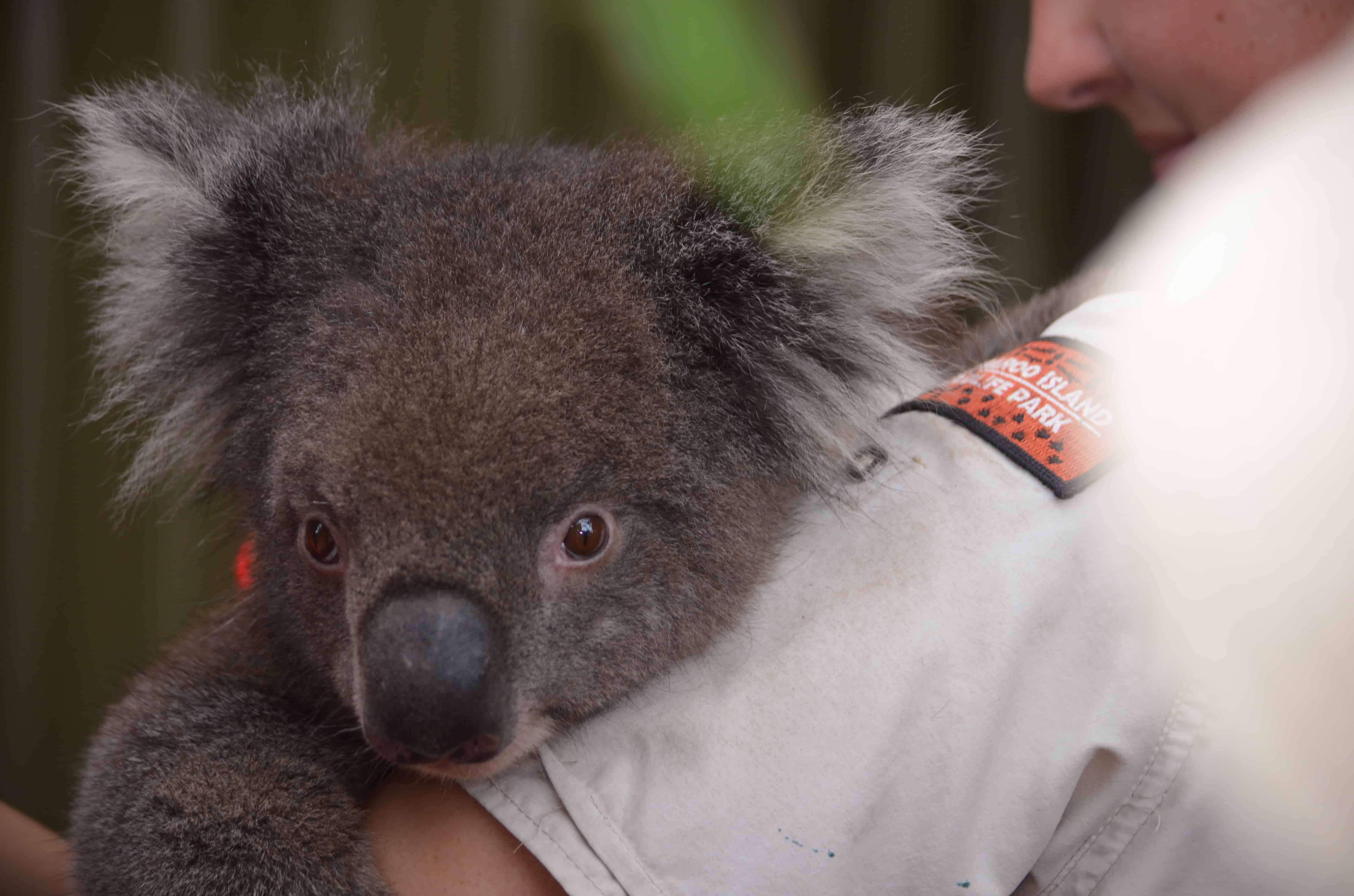 The Kangaroos on the island are smaller and darker color that the ones on the mainland. At 11 a.m. they allowed the visitors to go into the are with the Koala . All were sleeping.