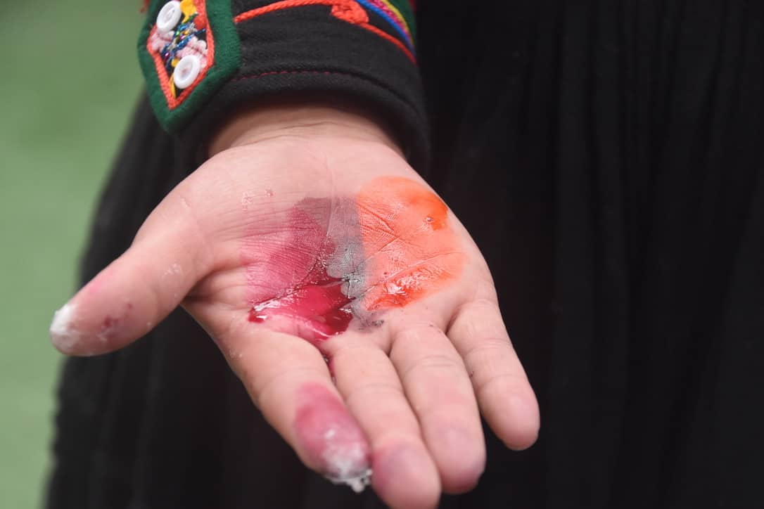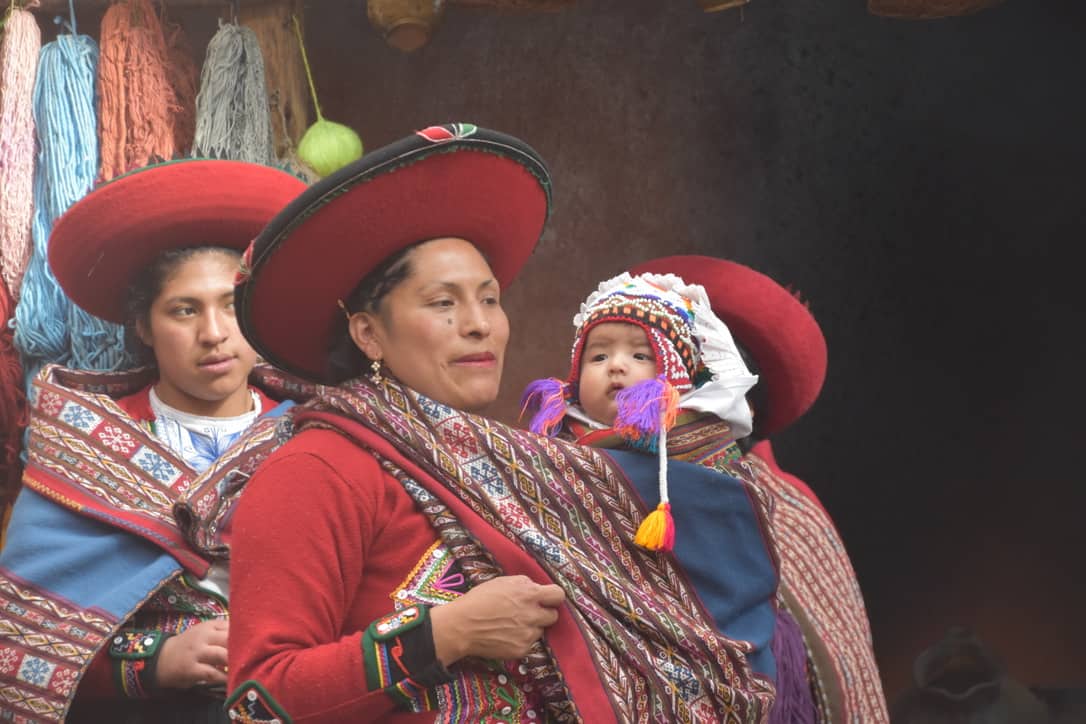 Each color comes from a specific berry, flower or leaf. You can see them dipping the alpaca into the vegetable dyes and the brilliant colors that are created. What a lesson in hard work and creativity. The woman in charge demonstrated how they use blankets they make to carry their babies, of course this is her child!