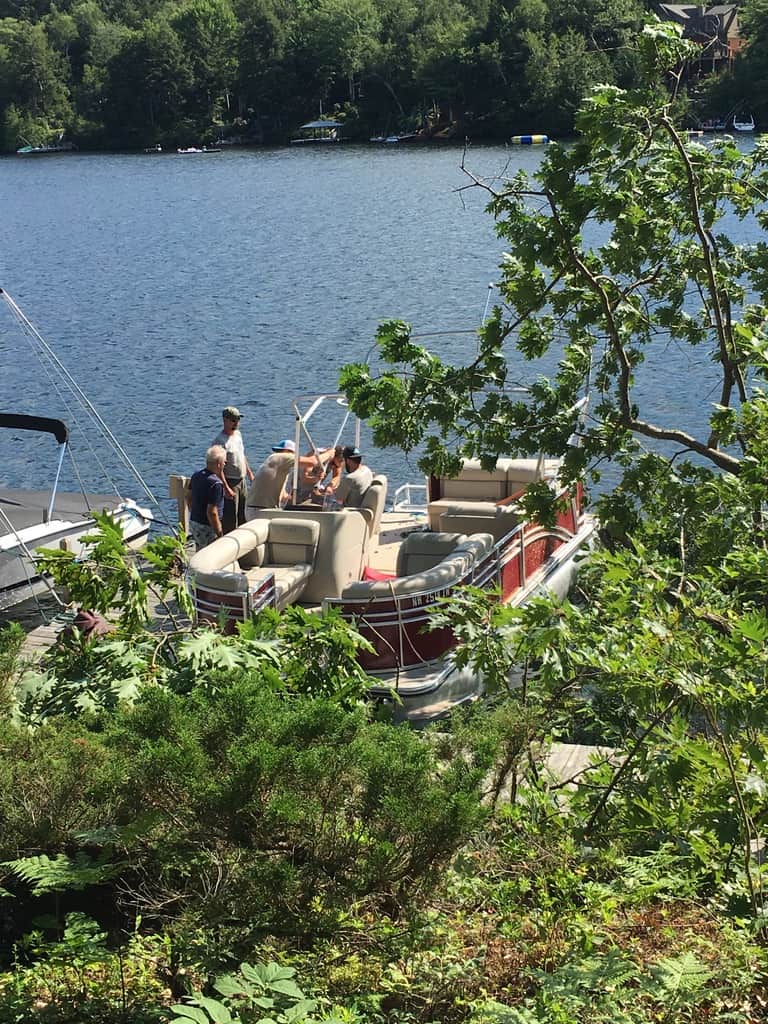 Janice called the owner of the house Sandy and explained the problem, she got all the right people there to manage the problem promptly. The dock person, the tree person and Brian called Sargent’s the place the boat was rented all came within 30 minutes. In addition, the Sunapee Lake police came to write up a report, mostly for insurance purposes. No-one had ever seen this before on the lake. We were lucky and blessed no-one was injured and really no major damage.