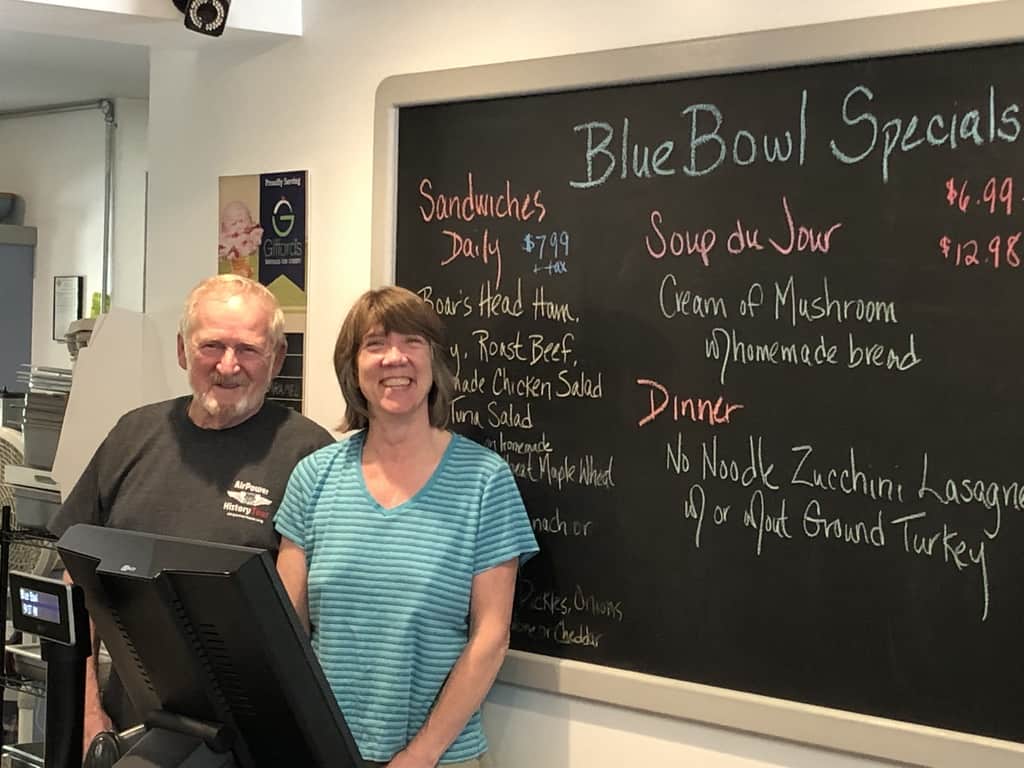 We had a good chat about their travels to Michigan upper peninsula and Wisconsin this summer. We ate at a cute deli/grocery store called the Blue Bowl Store. The people at the store were wonderful. We wanted a picture of Cody the manager. She grabbed her father who had managed before and laughed that she was now his boss when he comes in to help her out! If you are in the Manchester/ Concord area, treat your self to the great experience of eating or taking food out from the Blue Bowl Sensational!