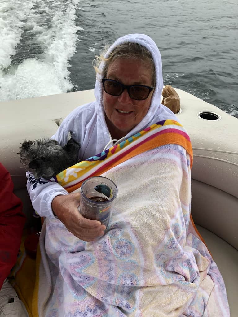 The rains came early Monday afternoon thru Tuesday. When the rain subsided a little bit late Monday afternoon we all went on the pontoon boat for a tour of the lake into the Sunapee Harbor for a drink at The Anchorage.