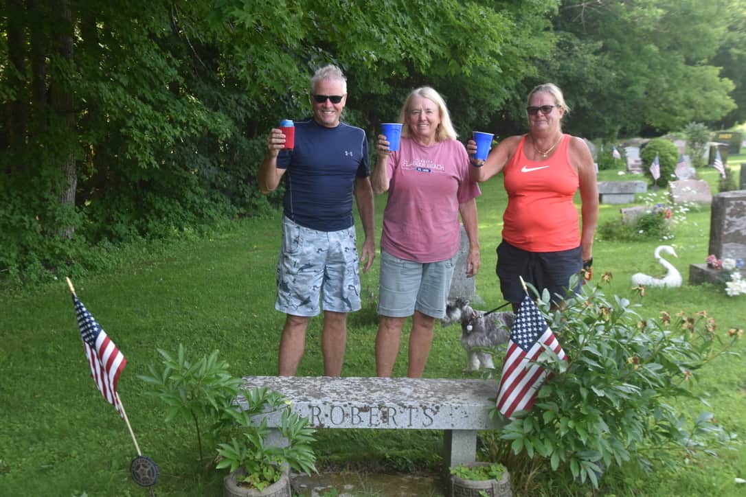 Janice’s parents lived on Lake Sunapee for 25 years and there were many family memories of water skiing and snow skiing at there. Both parents are buried at a local cemetery and it is a tradition to visit the grave site and have a martini toast to them. Their father Stan was the king of making martinis (or drinking them?!).