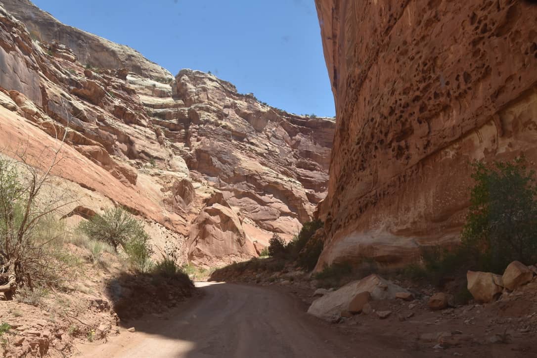 We drove into Boulder Utah,  a three store town,  and headed up to Capitol Reef  National Park. The park is beautiful cliffs, canyons, domes and bridges in the Waterpocket Fold, a geologic monocline (a wrinkle on the earth) extending almost 100 miles.