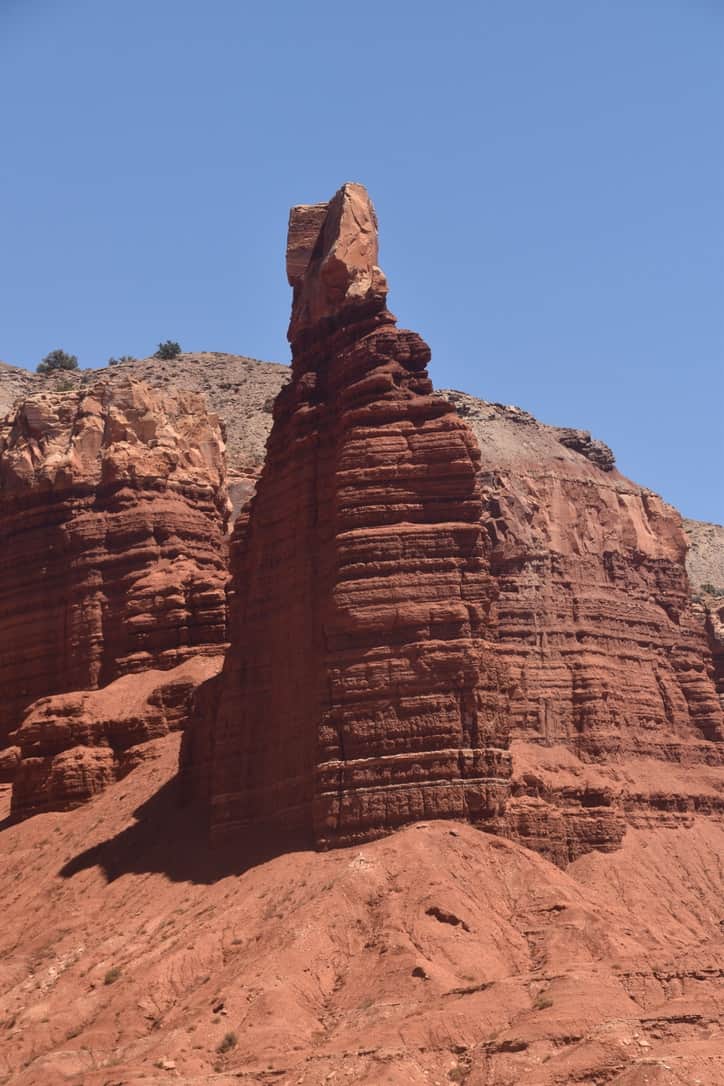 There is an eight mile drive to the end of the canyon, and then you can take a narrow unpaved road,  Capitol Gorge Road, another two miles where the canyon walls are above you.  The Waterpocket Fold defines Capitol Reef National Park. A nearly 100-mile long warp in the Earth’s crust, the Waterpocket Fold is a classic monocline, a “step-up” in the rock layers. The uplift of the entire Colorado Plateau and the resulting erosion has exposed this fold at the surface within the last 15 to 20 million years.