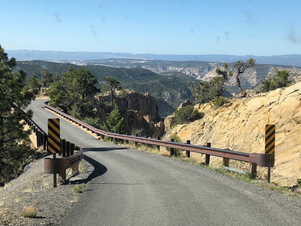 In the morning we started to drive “Hell’s Backbone Road”, the only road until Route 12 was completed between Escalante and Boulder in 1983. Hells Backbone runs from juniper desert up into the lush pine and aspen forest on Boulder Mountain. It was built by CCC (Civilian Conservation Corps) workers during the Great Depression era.