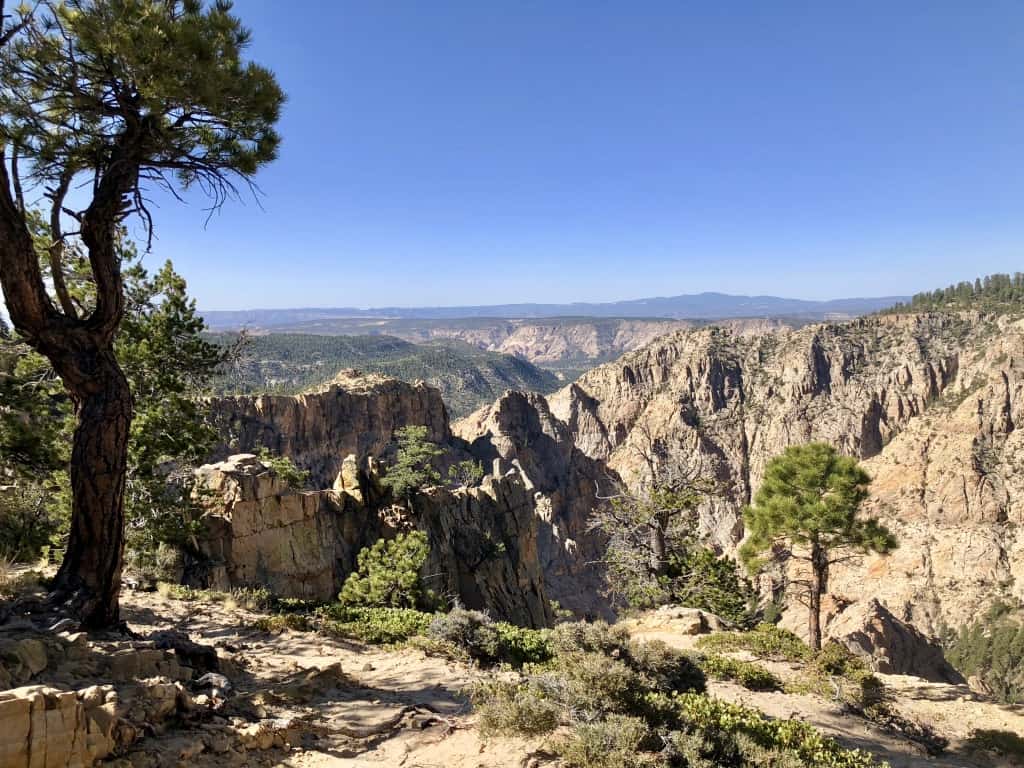 It was a “washboard” dirt/grave road, only open during late spring and summer. The road was rough but the views were sensational, many Ponderosa Pines along the way. About mid-way along the route, the road crossed the historic old, wooden Hells Backbone Bridge. In that area it follows contours just above the Box/Death Hollow Wilderness Area, and provides outstanding views down into rugged canyons as you can see from the pictures.