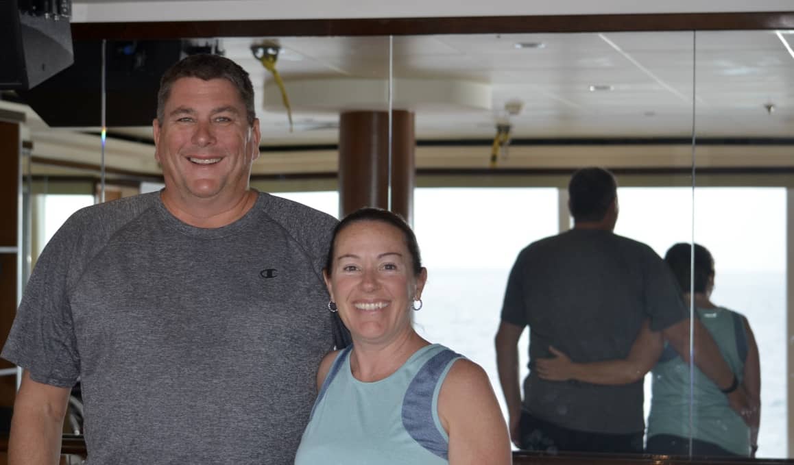 on the Norwegian Star is great. The ships staff works hard and they do a great job catering to your every need. Knowing the food would be plentiful we decided that we needed to get on a regular exercise program. Neither of us had ever done Yoga, so we tried a class, which we continued each day we were on the ship. The other exercise class was TRX,  john trxwhich we had not been introduced to before, but basically uses trxstraps with handles that hang from the ceiling that are used for strength training and stretching using your own weight for resistance. A very nice fitness center with ocean views! Our intent is to continue the two programs over the Norway Fyord and Baltic cruises. The two trainers Andrea and Johann did a wonderful job. Unfortunately, we still need to do the other exercise-push away from the table!