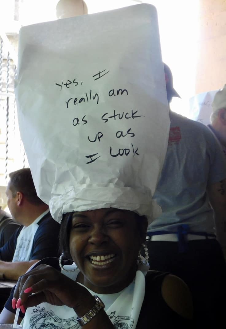 The waiters create hats for people and wrote funny items that the person wearing the had could not see, but everyone else could! A few beers and a fun time. Off we headed to our overnight park getting ready for golf the next day.