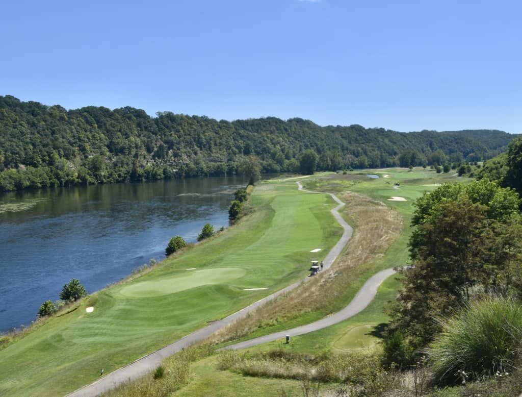 The River Course originally was designed by Ault, Clark, and Associates and was built in 1998-1999. The Virginia Tech Foundation acquired the course in 2002. The Foundation’s members thought the 2.5 miles of the well-designed course on the scenic New River had significant potential.Tech alumnus and philanthropist Bill and wife Alice Goodwin asked their friend, Pete Dye, to consider revamping “The River” into a world-class course. After visiting, Dye outlined his ideas with a revised plan for the course.