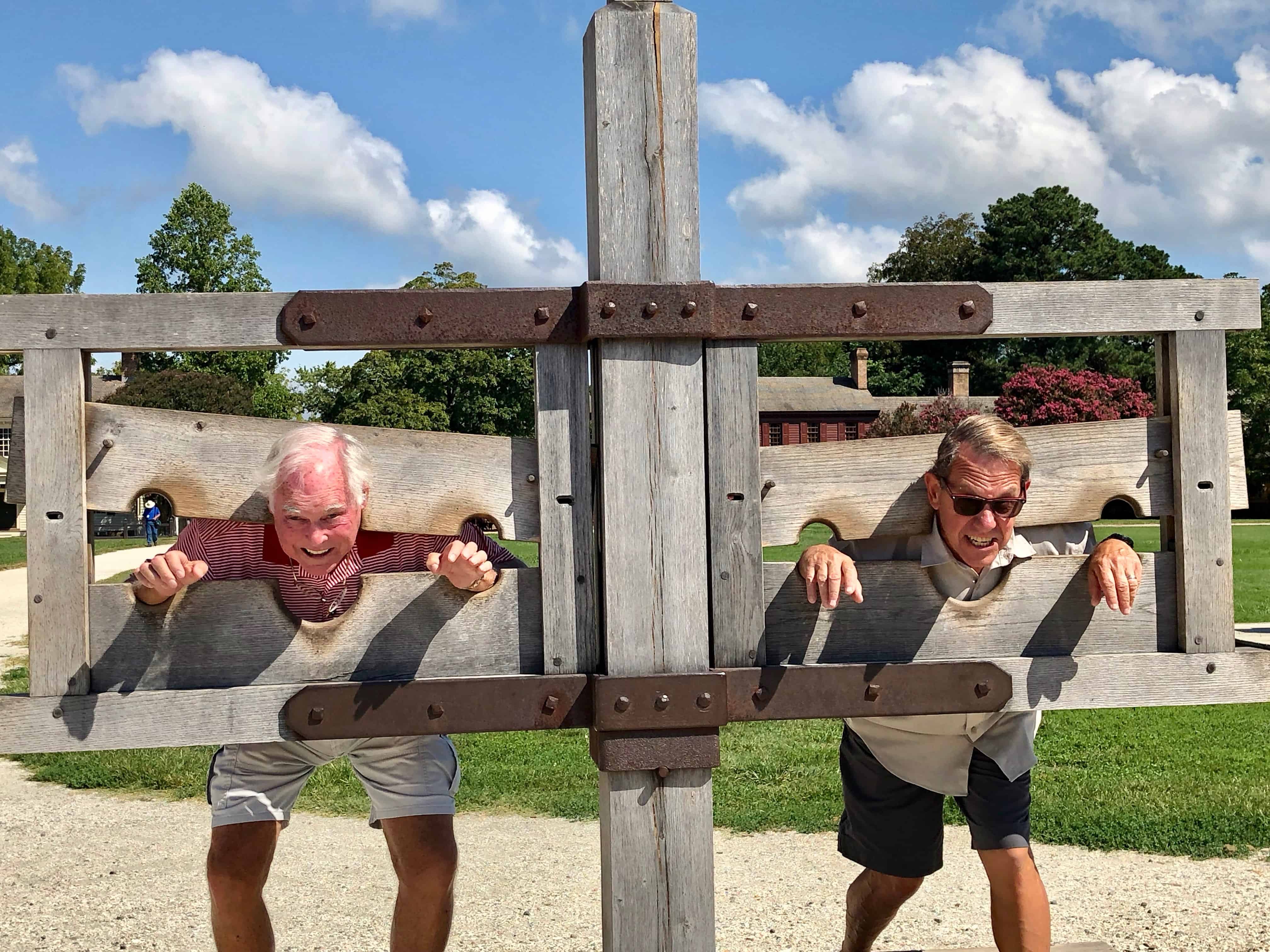 Following church, we took a stroll into the Colonial Williamsburg Village. You only need passes to enter the buildings so having done the full tour in the past, we enjoyed the walk through the streets until it became obvious for whatever Eddie and John did in the past. It caught up to them and they were forced to pay!!