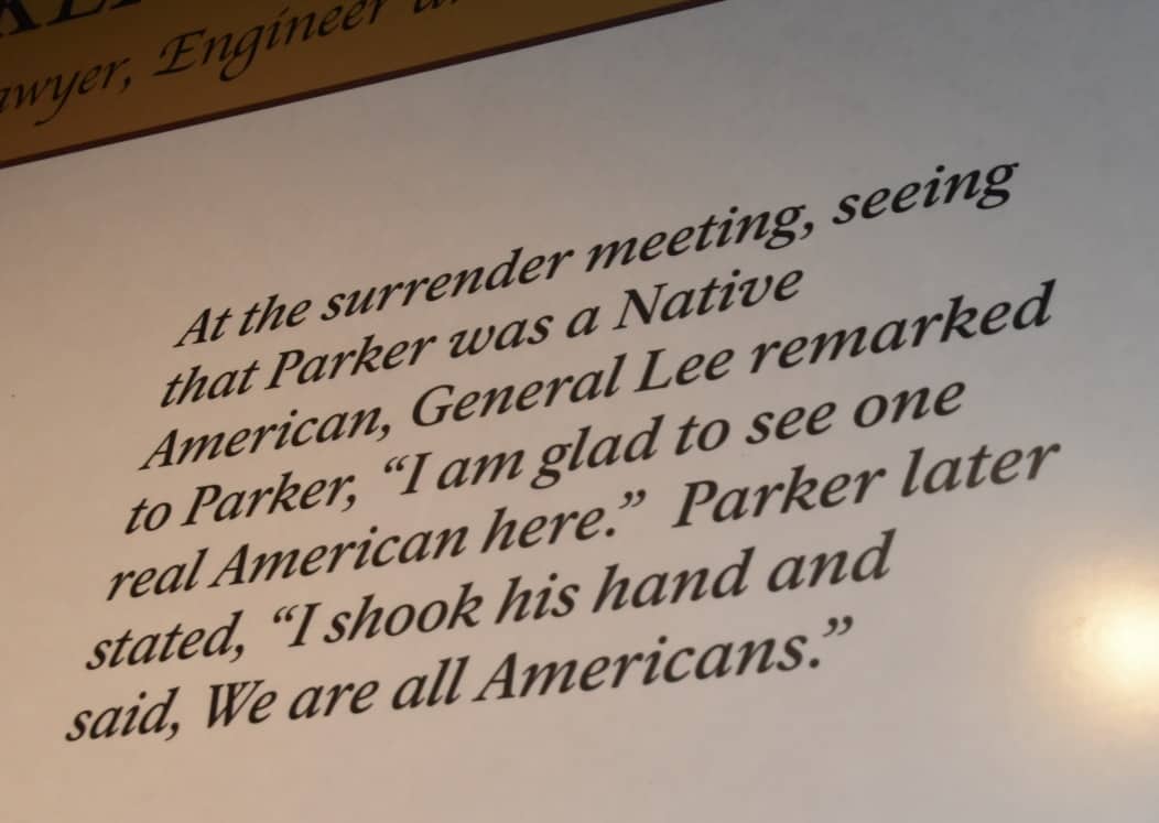 Parker was educated as a lawyer but could not take the bar since Indians were not considered Citizens at that time. Parker met Grant in Illinois years earlier and had become friends. Grant was impressed by Parker so when he put Parker on his staff. Parker was promoted to Brevet Brigadier General after the war. Parker wrote the “Surrender” document and was there at the signing of the surrender.