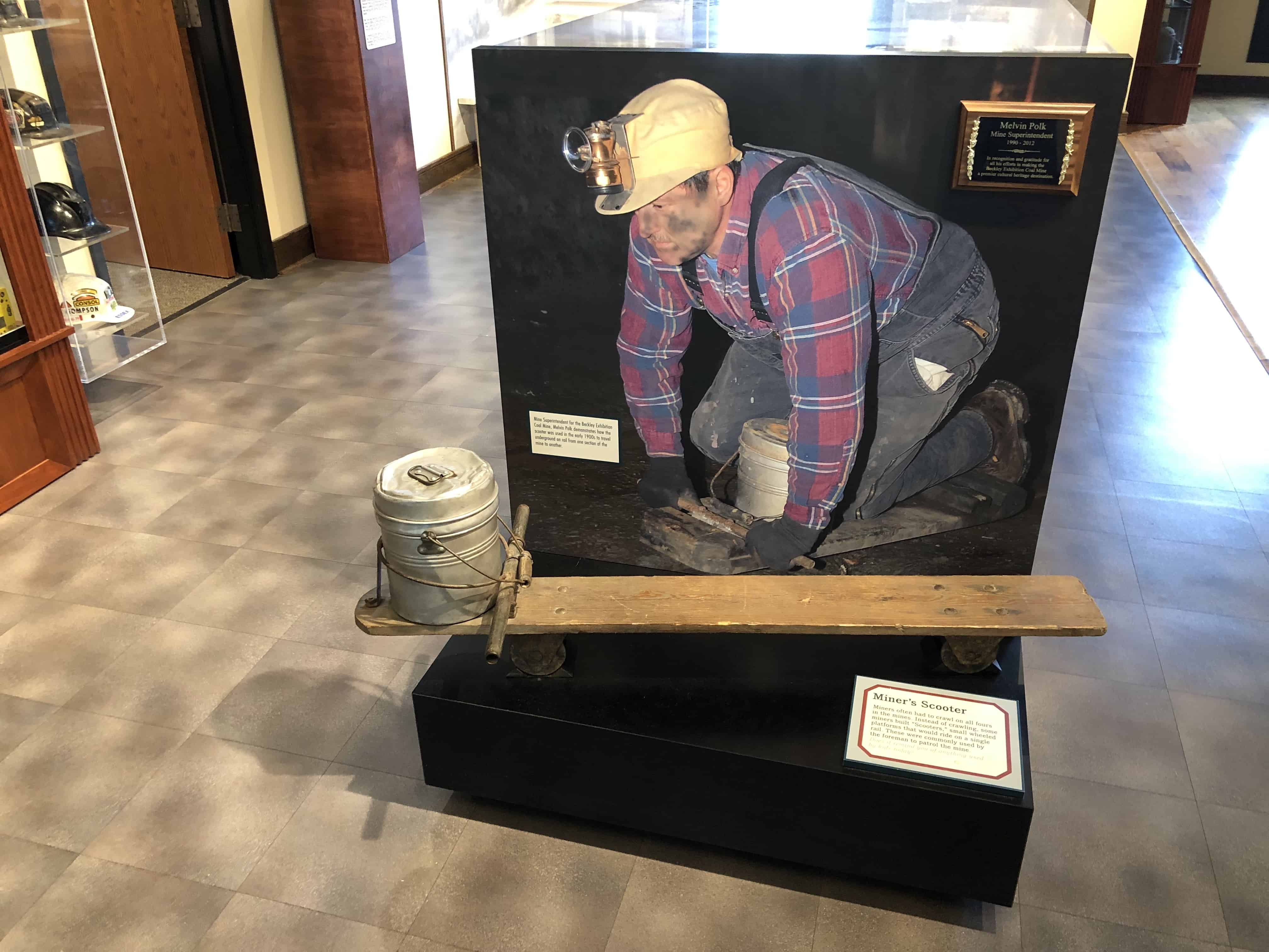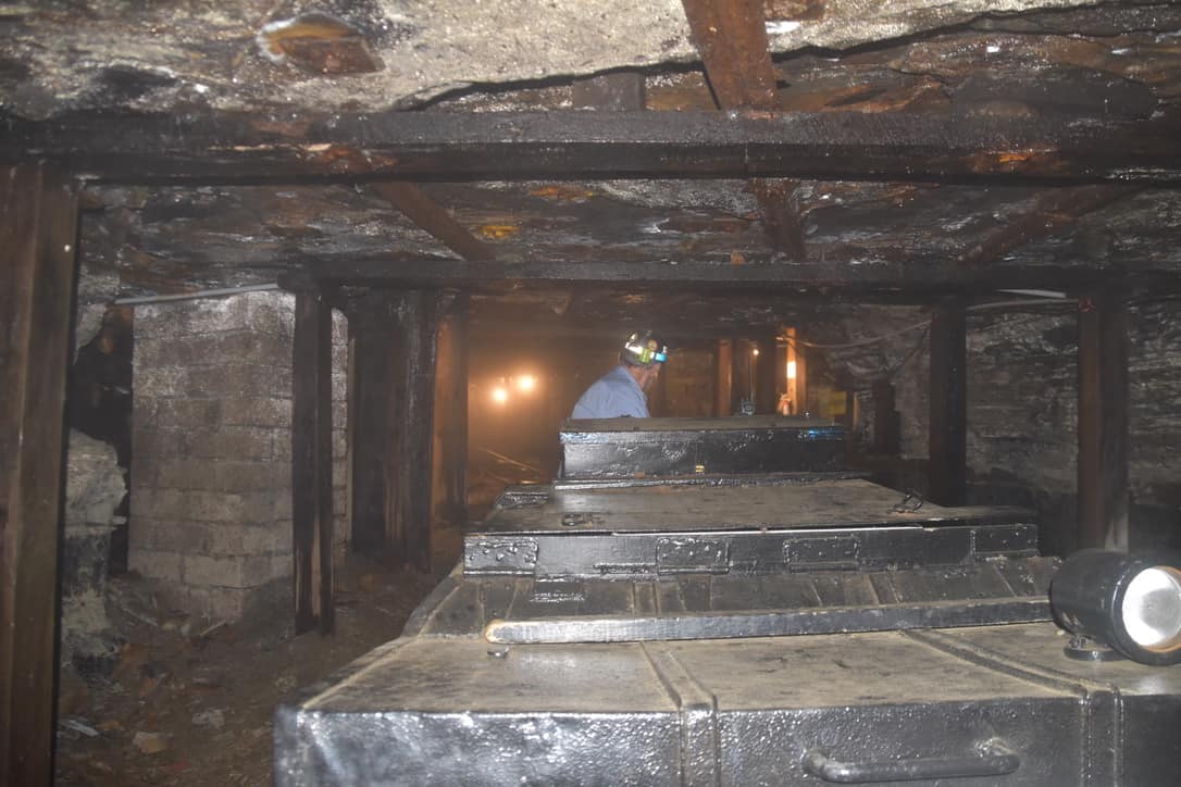 The coal deposits were only 30 inches high with stone above. Our guide described it as working under a kitchen table for the whole day on your knees as he undercut the face of his work area. He had to bore the holes for the blasting material, set the blasts, dig and load the coal by himself. He then stacked the coal onto a car to be dragged out of the mine by the mules, that car also carried his identifying board since they were paid by the ton.”