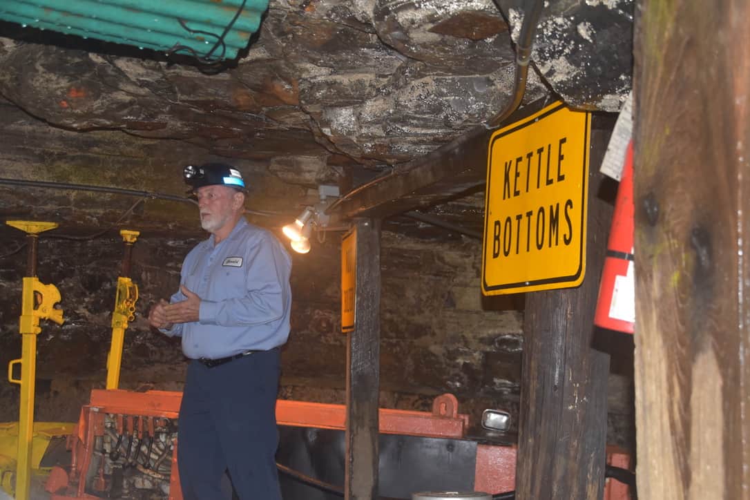 Our tour guide was a coal miner for over 20 years, at another coal mine in West Virginia. As he towed us through the mine on the tracks we stopped and he told stories about the mine and the miners who worked it. We were taken down about 500 feet into the mine on a small train called a “mantrip”, an underground personnel carrier designed specifically for the safe transport of personnel and their supplies into the underground work areas. Our trip was a luxury when compared to how the miner’s road the tracks on what would be best described as “lay down” skateboards, with their lunch bucket and equipment strapped on!