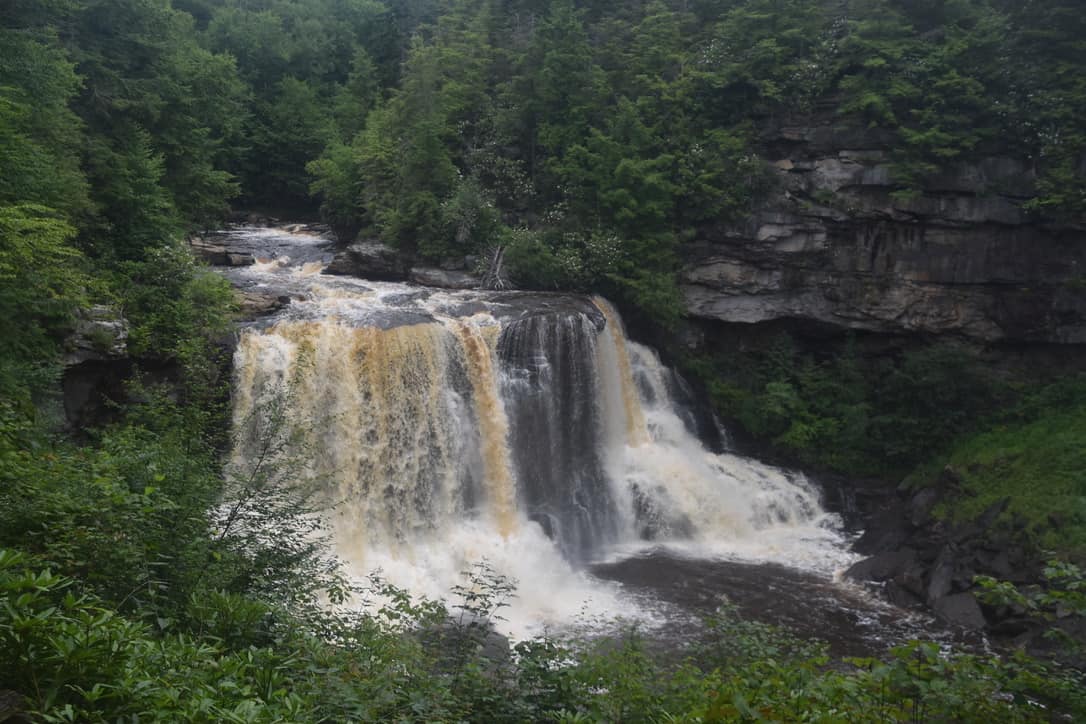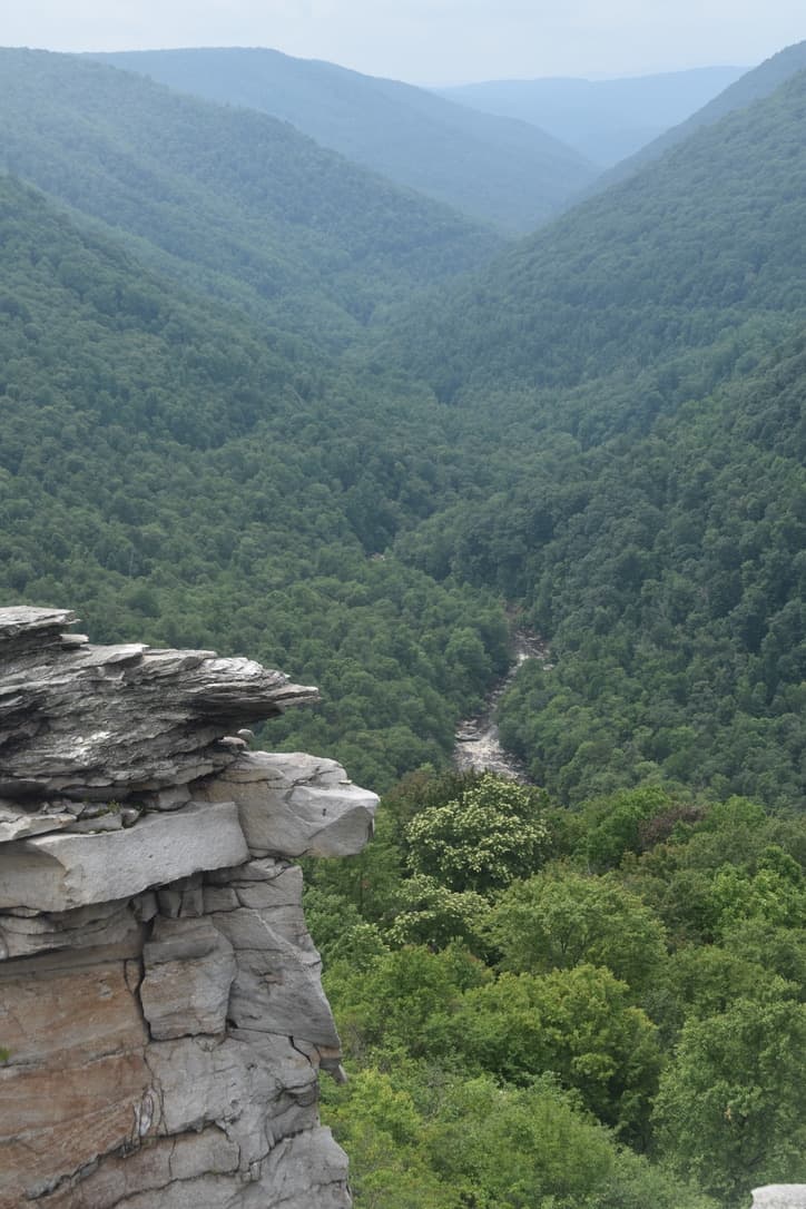 The next morning we headed out to hike down to the falls. Blackwater Falls, a 62-foot cascade where the Blackwater River leaves its leisurely course in the Canaan Valley and enters rugged Blackwater Canyon. The rock formations called the Pottsville Formation is a mapped bedrock unit and is a major ridge formed in the Appalachians. This sandstone is so strong that it is only the layers below this layer that crack and large pieces of rock crumble to the bottom.